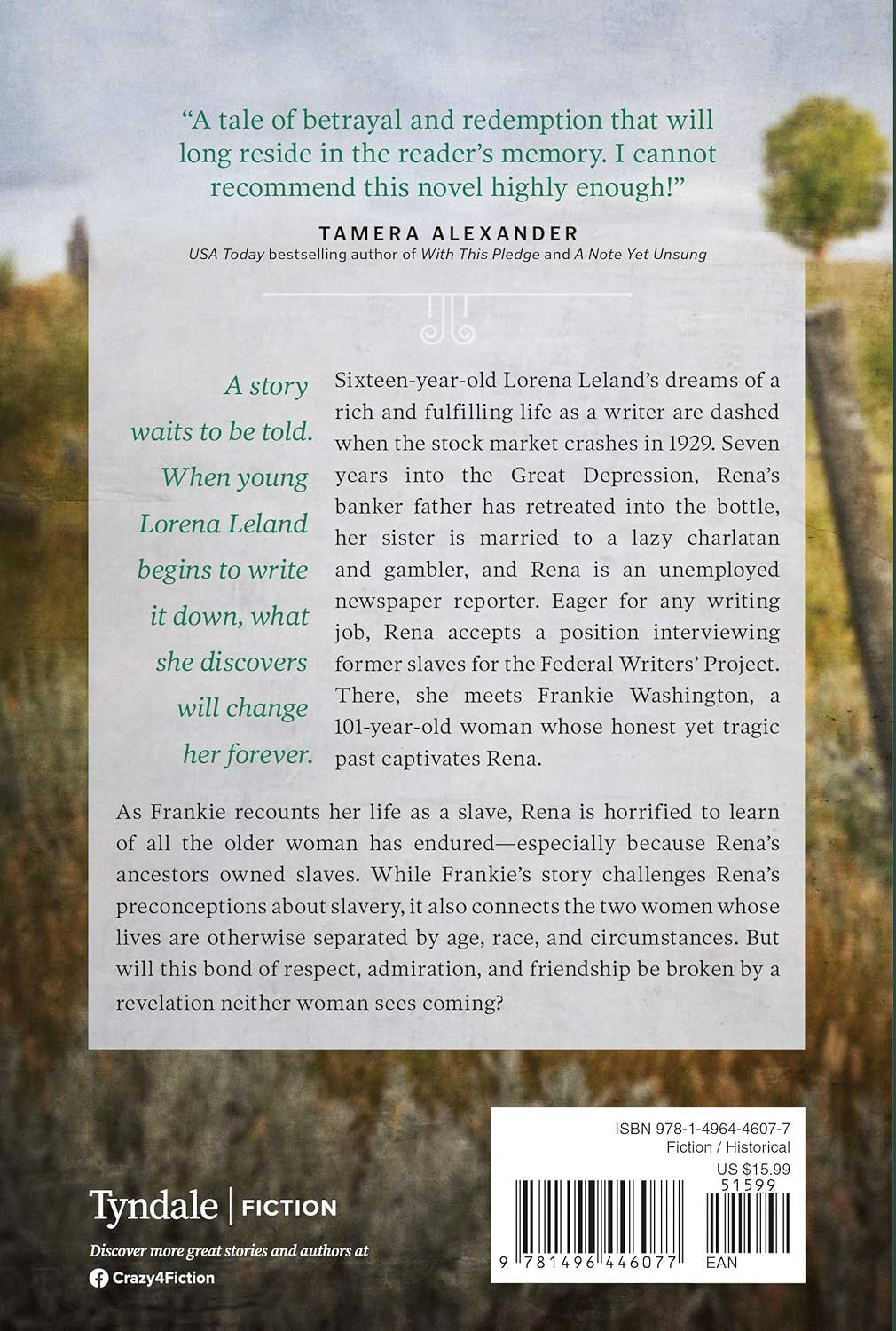 Sixteen-year-old Lorena Leland’s dreams of a rich and fulfilling life as a writer are dashed when the stock market crashes in 1929. Seven years into the Great Depression, Rena’s banker father has retreated into the bottle, her sister is married to a lazy charlatan and gambler, and Rena is an unemployed newspaper reporter. Eager for any writing job, Rena accepts a position interviewing former slaves for the Federal Writers’ Project. There, she meets Frankie Washington, a 101-year-old woman whose honest yet tragic past captivates Rena.