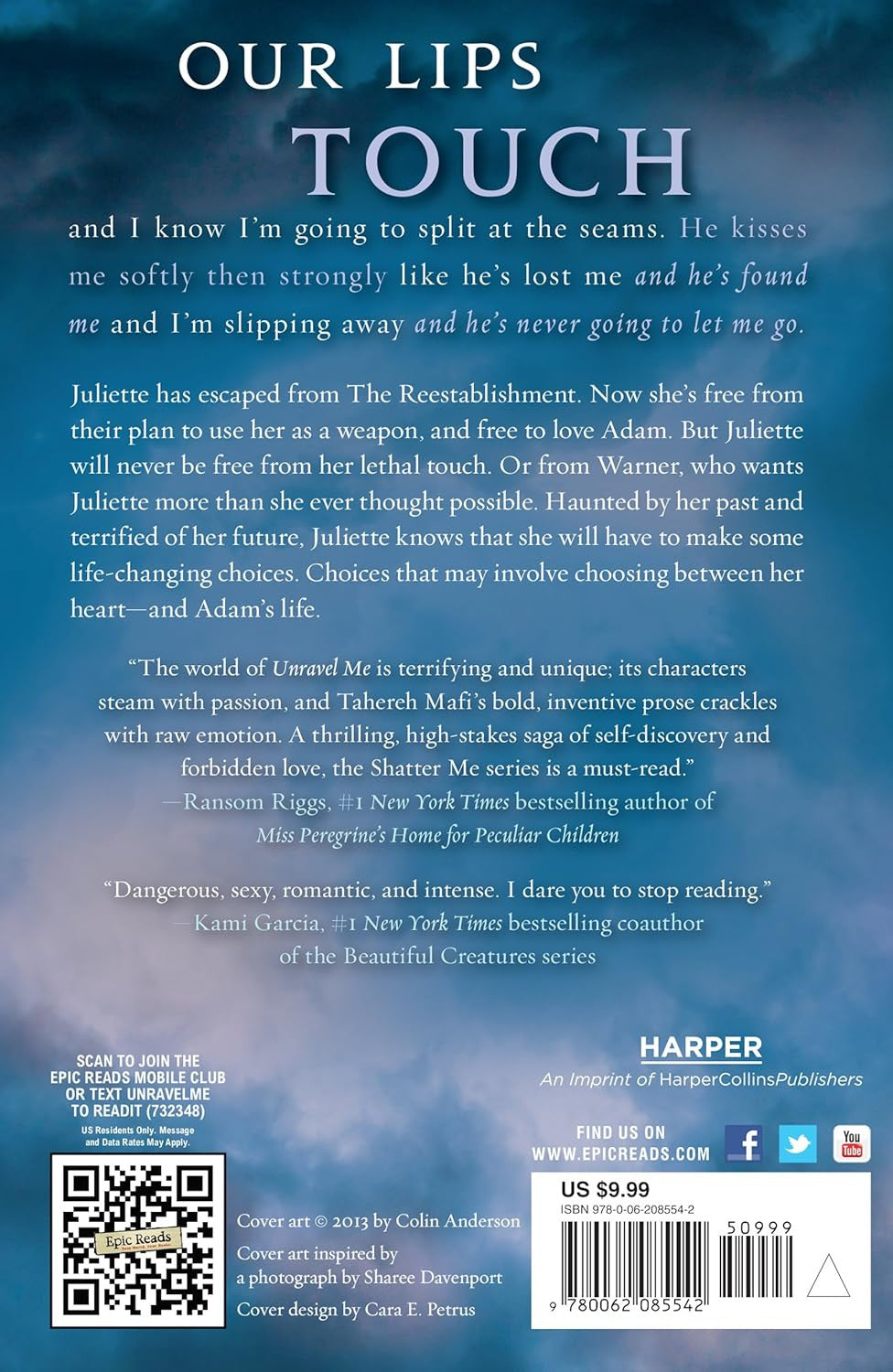 The thrilling second installment in New York Times bestselling author Tahereh Mafi’s Shatter Me series. It should have taken Juliette a single touch to kill Warner. But his mysterious immunity to her deadly power has left her shaken, wondering why her ultimate defense mechanism failed against the person she most needs protection from. She and Adam were able to escape Warner’s clutches and join up with a group of rebels, many of whom have powers of their own. Juliette will finally be able to actively fight against The Reestablishment and try to fix her broken world. And perhaps these new allies can help her shed light on the secret behind Adam’s—and Warner’s—immunity to her killer skin. Juliette’s world is packed with high-stakes action and tantalizing romance, perfect for fans of the Red Queen series by Victoria Aveyard and the Darkest Minds trilogy by Alexandra Bracken. Ransom Riggs, #1 New York Times bestselling author of Miss Peregrine's Home for Peculiar Children, raved: "A thrilling, high-stakes saga of self-discovery and forbidden love, the Shatter Me series is a must-read for fans of dystopian young-adult literature—or any literature!" This bestselling series from powerhouse author Tahereh Mafi showcases relentlessly thrilling action, heart-stopping romance, and a war-torn world in which rebellion is the only path to freedom. And don't miss Watch Me, the first book in a new series in the Shatter Me universe set ten years after the fall of The Reestablishment, on sale in April 2025!