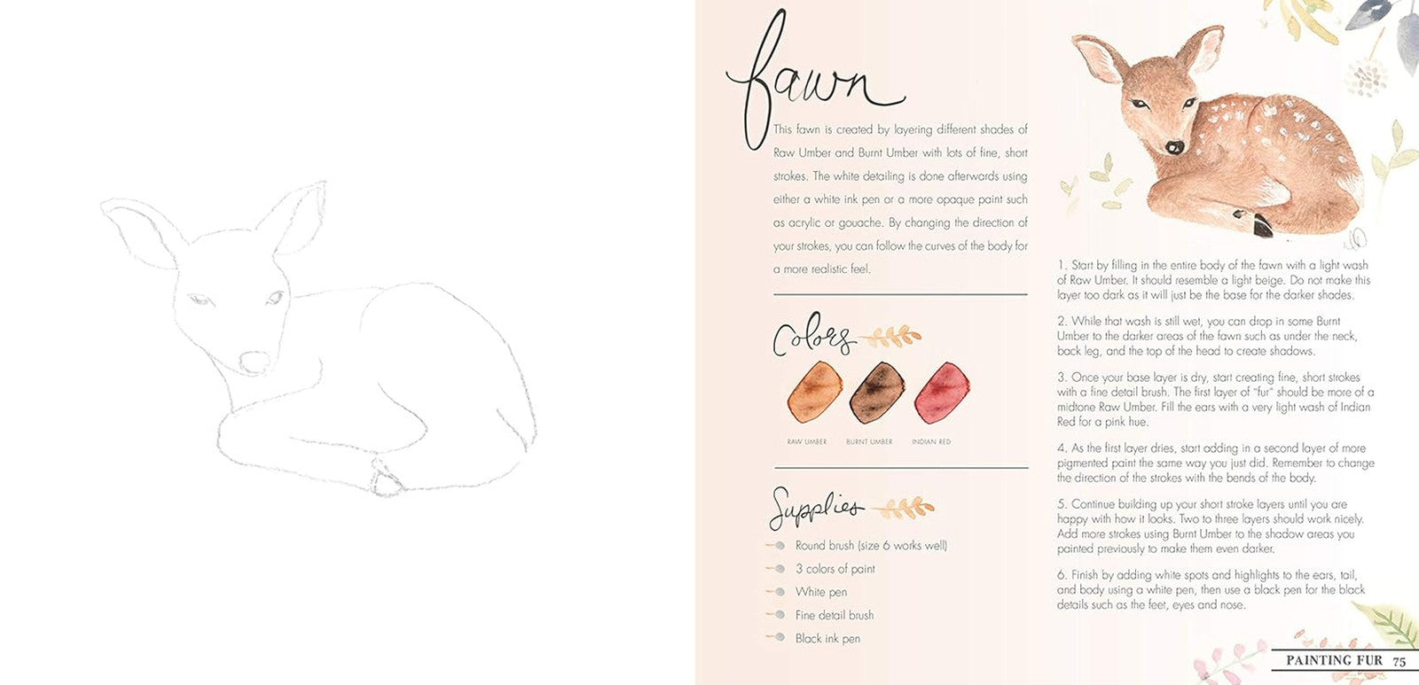 In Watercolor With Me in the Forest, Dana provides light outlines of each project, and every page is printed on premium watercolor paper, so you can focus on different techniques―wet-on-dry, wet-on-wet, painting fur and ink and wash. Even if you’ve never picked up a paintbrush before, Dana’s creative tricks will ensure that every piece of art is frame-worthy.