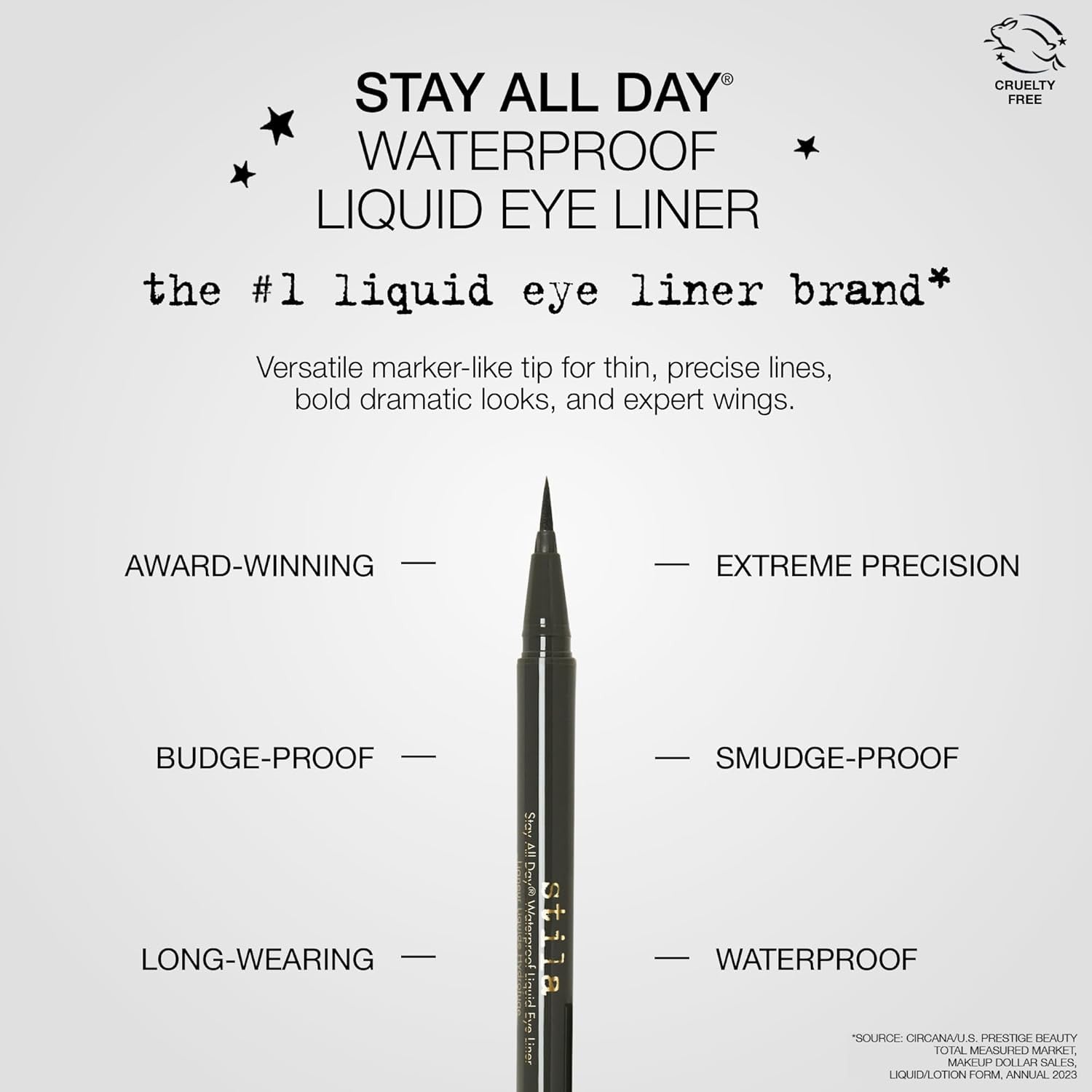 Waterproof Liquid Eye Liner, Stay All Day Makeup with Fine Brush Tip Lasting Satin Finish, Smudge-Proof & Transfer-Resistant
