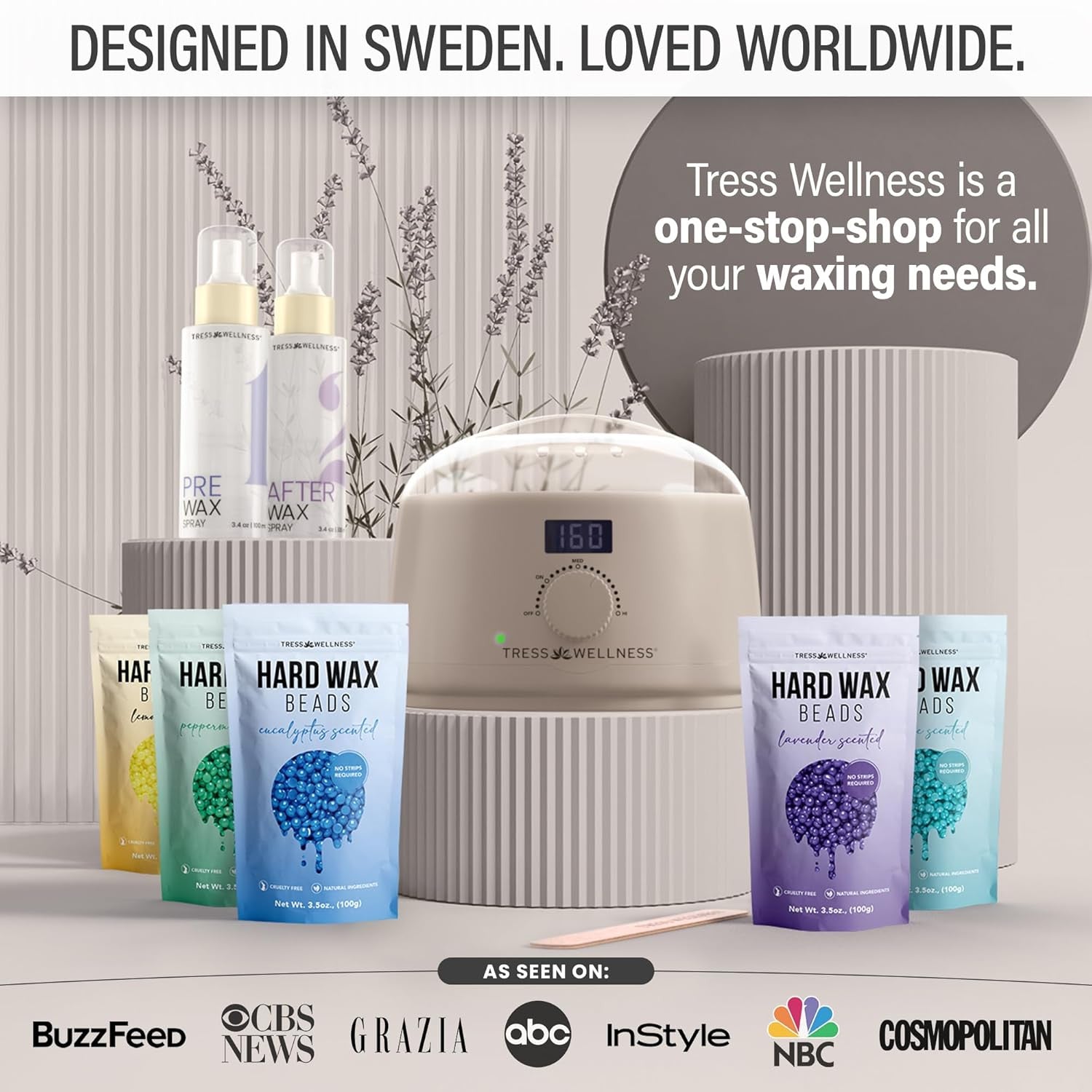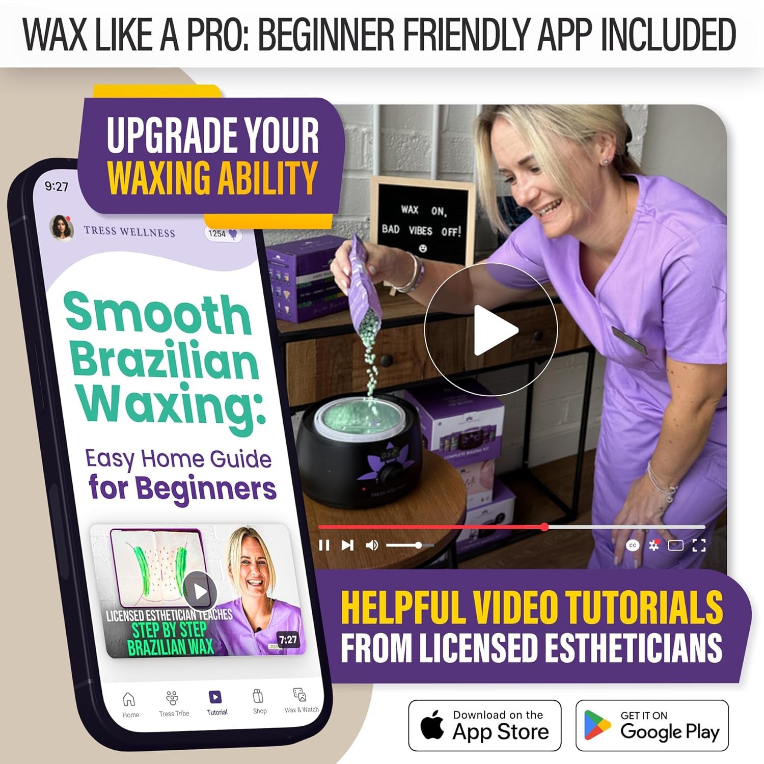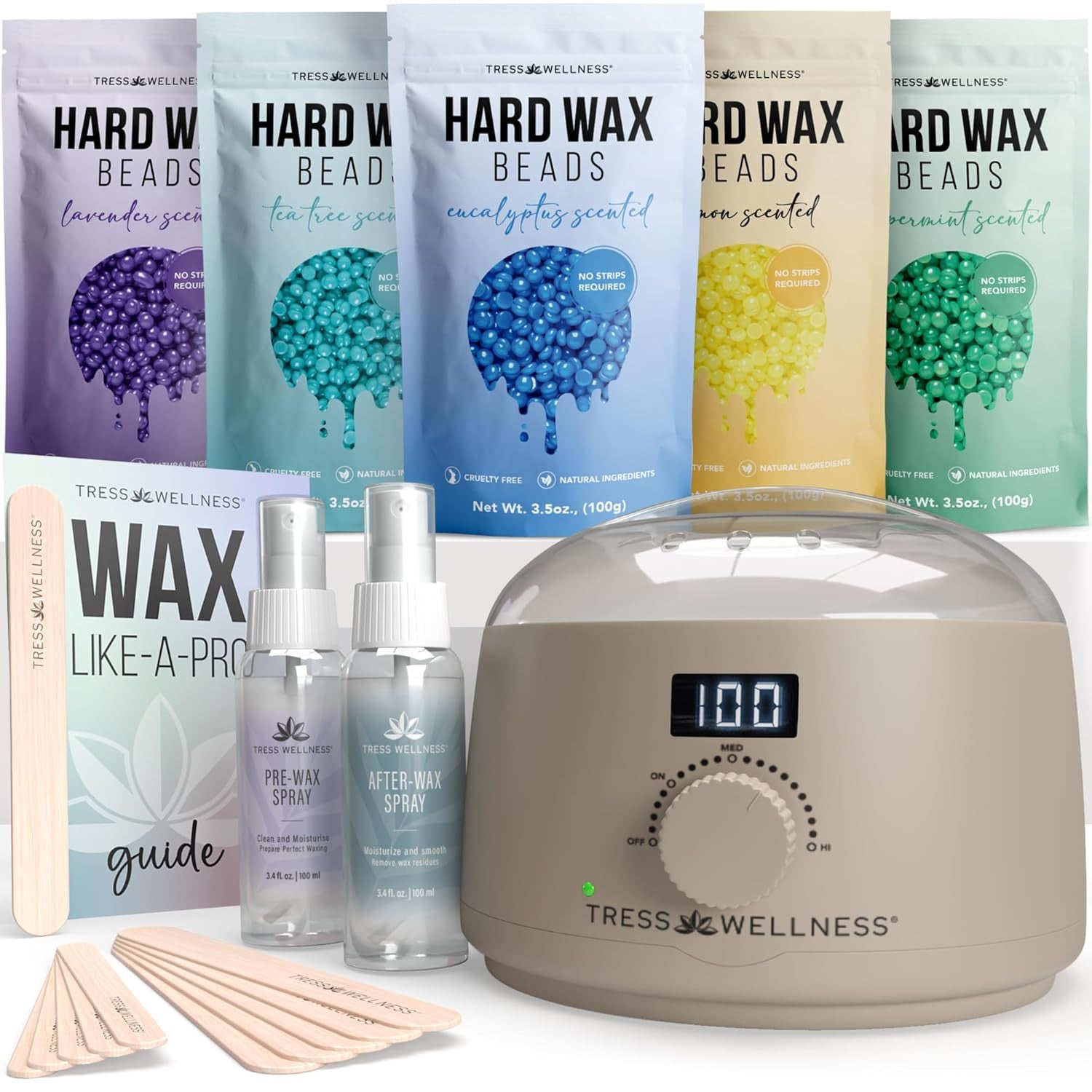 Waxing Kit for Sensitive Skin – Safe for Face & Skin, Prep & Aftercare Spray, Easy to Use – At-Home Kit for Face, Bikini, Brazilian & Full Body - Digital Display, Beige