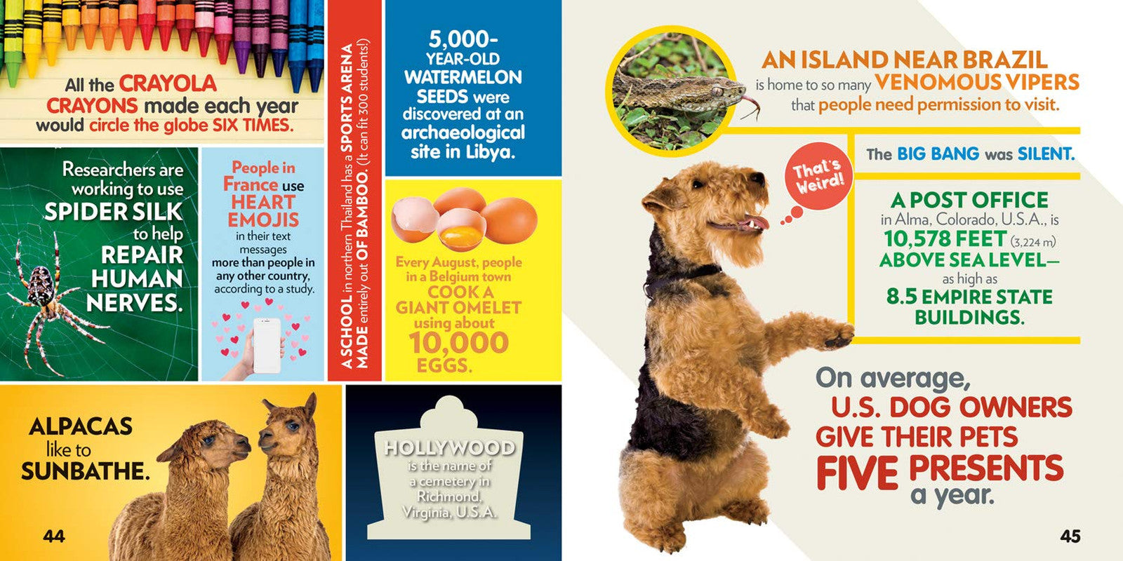 The world can be a pretty wacky place! Kids will have a blast exploring just HOW wacky in the first book in the wildly popular Weird But True series, full of 350 surprising and amazing facts. Topics include science, space, weather, geography, food, pop culture, and just about everything else under the sun, presented with fascinating photos and illustrations. This quirky little reference is so much fun, kids forget they're learning.