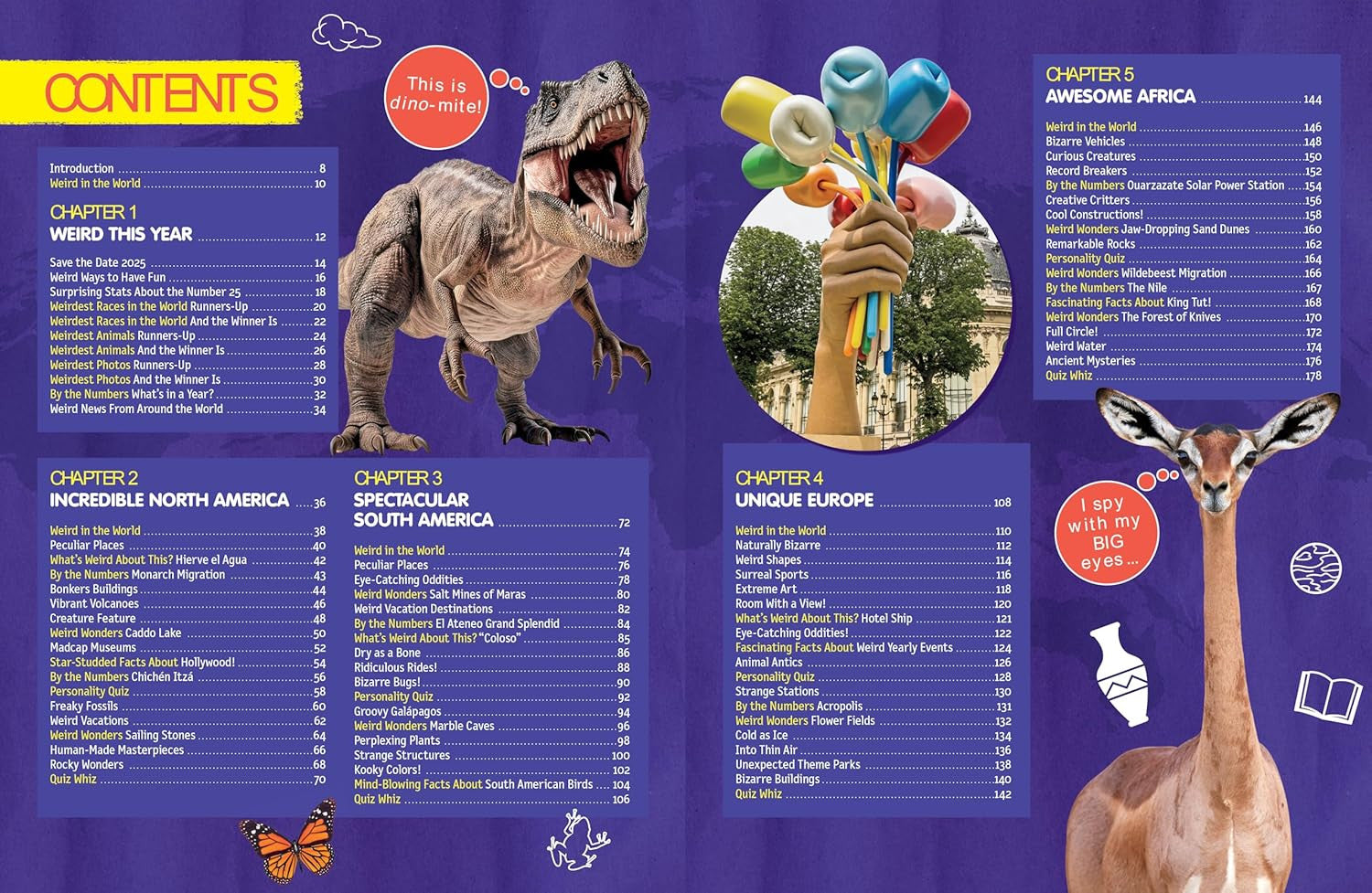 This annual collection is updated each year with NEW world’s weirdest winners from around the globe, weird news, fresh facts, and strange sites, animals, and events for every continent. Weird But True! World 2025 is the latest, greatest, and WEIRDEST edition yet.