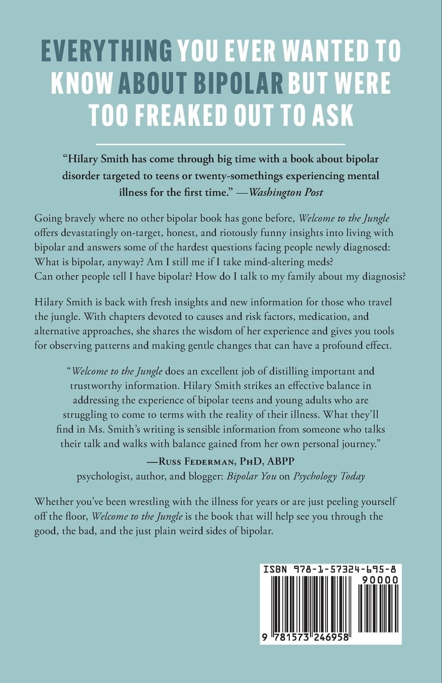 Welcome to the Jungle has a greater focus on bipolar people, not the diagnosis: the ways in which each person can find his or her own way through the extreme emotional states and intense experiences that we are calling “bipolar”―whether that means medication or meditation, psychiatrists or vision quests, good sleep or good all-night dancing, or a little bit of everything. An honest, relatable book that can help you figure out how to live your life with bipolar disorder. Many bipolar books are too clinical, too alarmist, and too clearly written for family members and caretakers of people diagnosed with this mood disorder. Welcome to the Jungle is different. Author Hilary Smith wrote this guide because it is the book she wishes she'd been given when she was first diagnosed with bipolar disorder. It answers questions, points to resources, and most of all, comes from someone who understands what it’s like to be thrown off course by an overwhelming mental health issue―and what to do afterwards. Know that you are not alone―and that many paths can lead to healing. Just like for everyone else, there are many, many paths that bipolar people can take in life. Learn more about how to live your own life with a mental illness using the help of the insights in Welcome to the Jungle, which covers topics such as: Readers of bipolar mental health books like The Bipolar Workbook, Rock Steady, or OMG That's Me! will love the devastatingly on-target, honest insights offered in Welcome to the Jungle. *This book is not intended to diagnose, treat, or prevent any illness or act as a substitute for advice from a doctor or psychiatrist.*A Bipolar Guide from a Bipolar Person