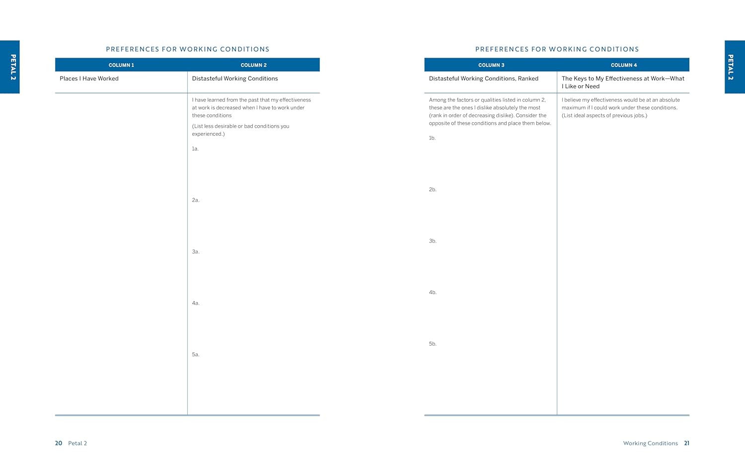 ...and more of Richard N. Bolles's helpful charts and activities. This workbook allows job-hunters to roll up their sleeves and discover how their unique interests, passions, and dreams will give them, once completed, a picture of their dream job.