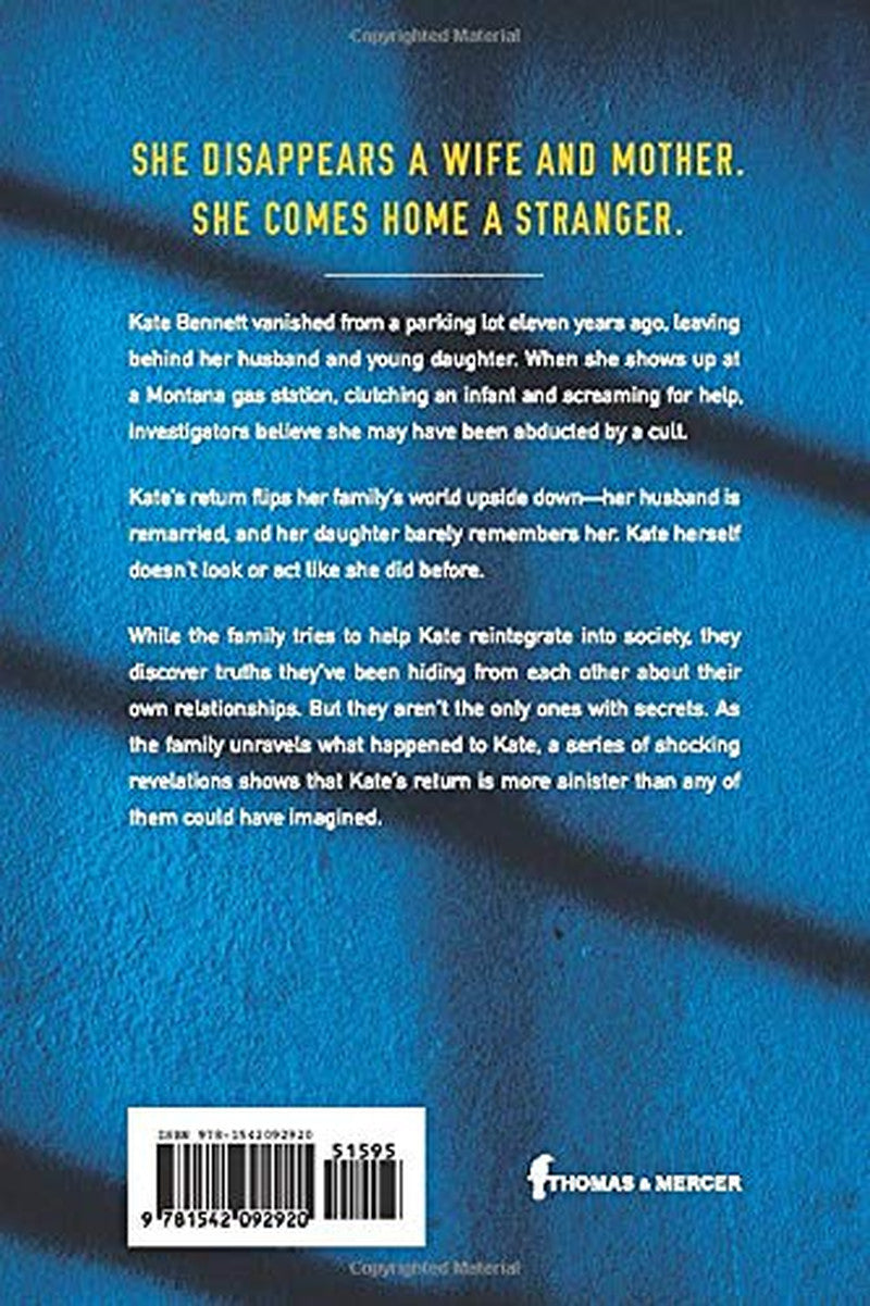 One woman’s reappearance throws her family into turmoil, exposing dark secrets and the hidden, often devastating truth of family relationships. Kate Bennett vanished from a parking lot eleven years ago, leaving behind her husband and young daughter. When she shows up at a Montana gas station, clutching an infant and screaming for help, investigators believe she may have been abducted by a cult. Kate’s return flips her family’s world upside down―her husband is remarried, and her daughter barely remembers her. Kate herself doesn’t look or act like she did before. While the family tries to help Kate reintegrate into society, they discover truths they’ve been hiding from each other about their own relationships. But they aren’t the only ones with secrets. As the family unravels what happened to Kate, a series of shocking revelations shows that Kate’s return is more sinister than any of them could have imagined.