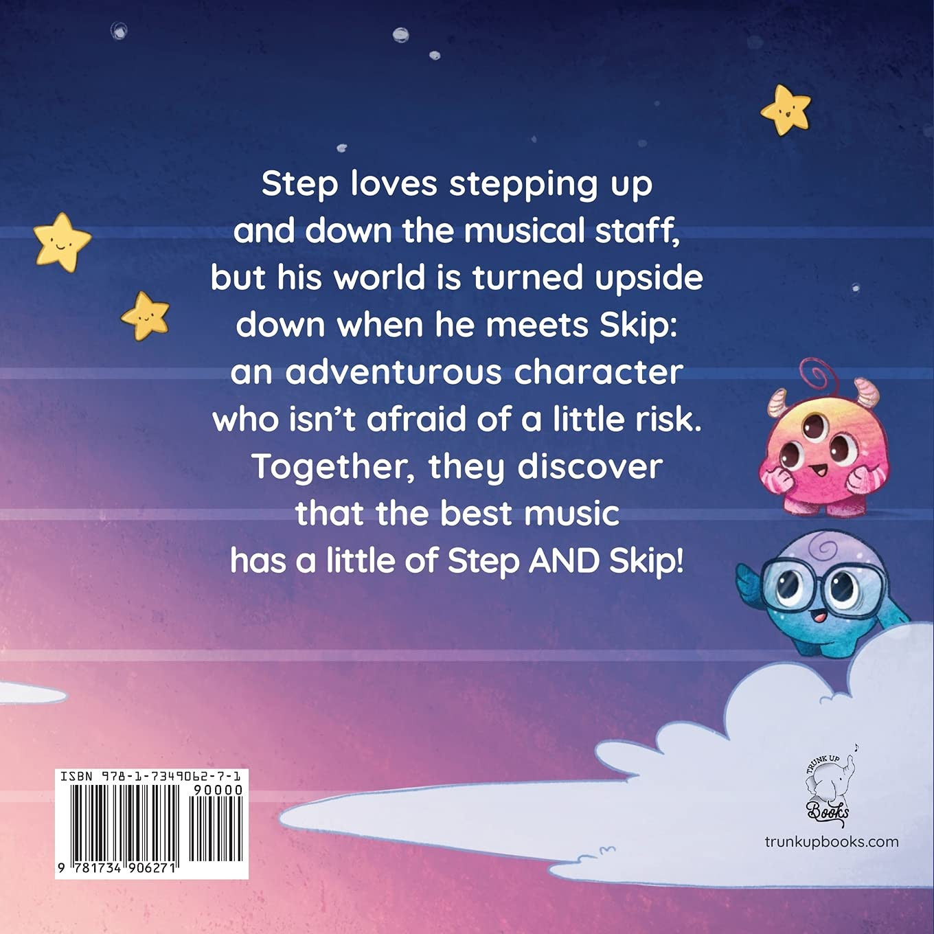 Step loves moving one note at a time up and down the musical staff. Then along comes Skip—bold, bouncy, and not afraid to jump over a note. When these two meet, they discover that the best melodies use both: smooth steps and exciting skips! Why teachers love it: