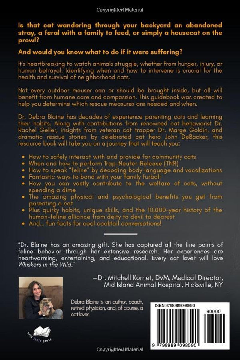 “Dr. Blaine has an amazing gift. She has captured all the fine points of feline behavior through her extensive research. Her experiences are heartwarming, entertaining, and educational. Every cat lover will love Whiskers in the Wild.”