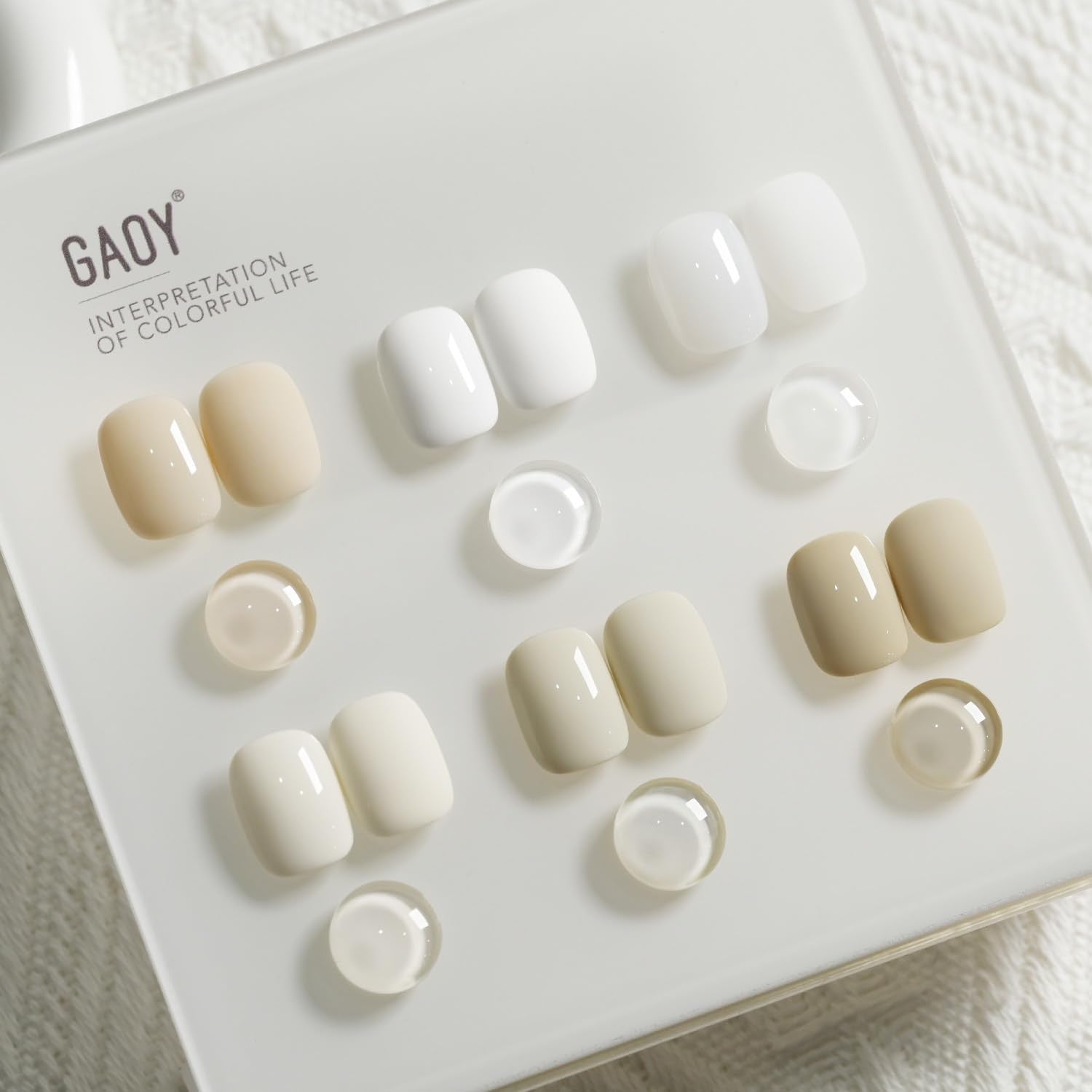 White Gel Nail Polish Set, 6 Colors Jelly Milky White Soak off UV Light Cure Gel