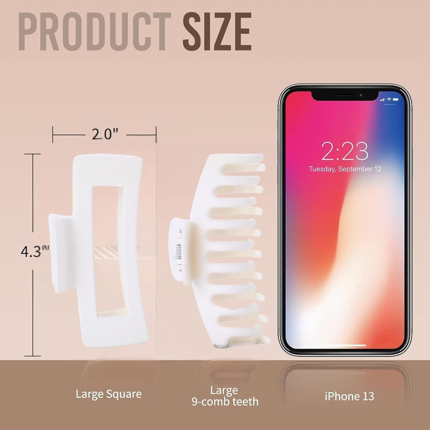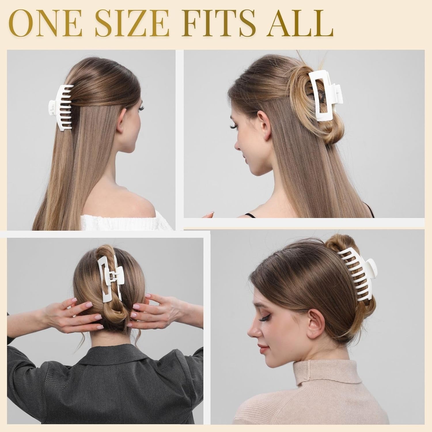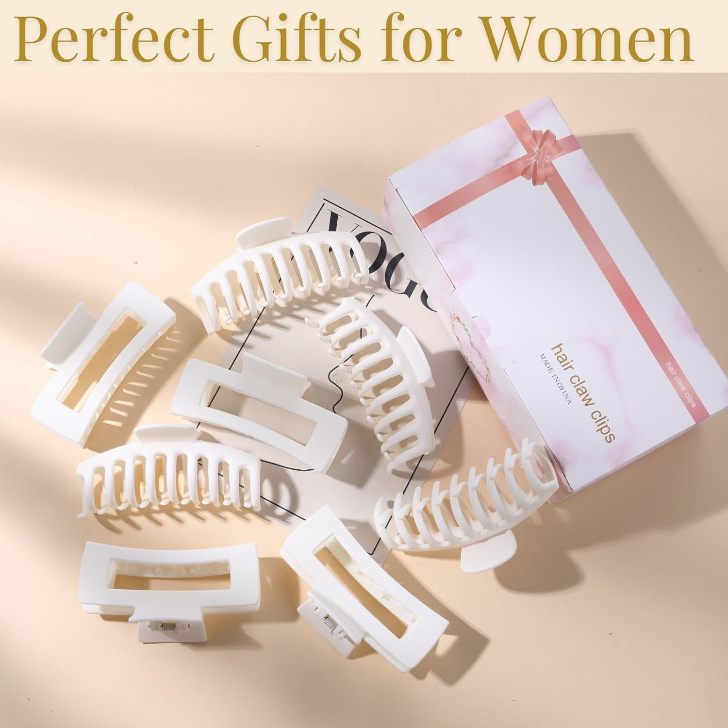 White Hair Clips for Women - 8 Pack 4.3 Inch Large Matte Banana Claw Clips for W