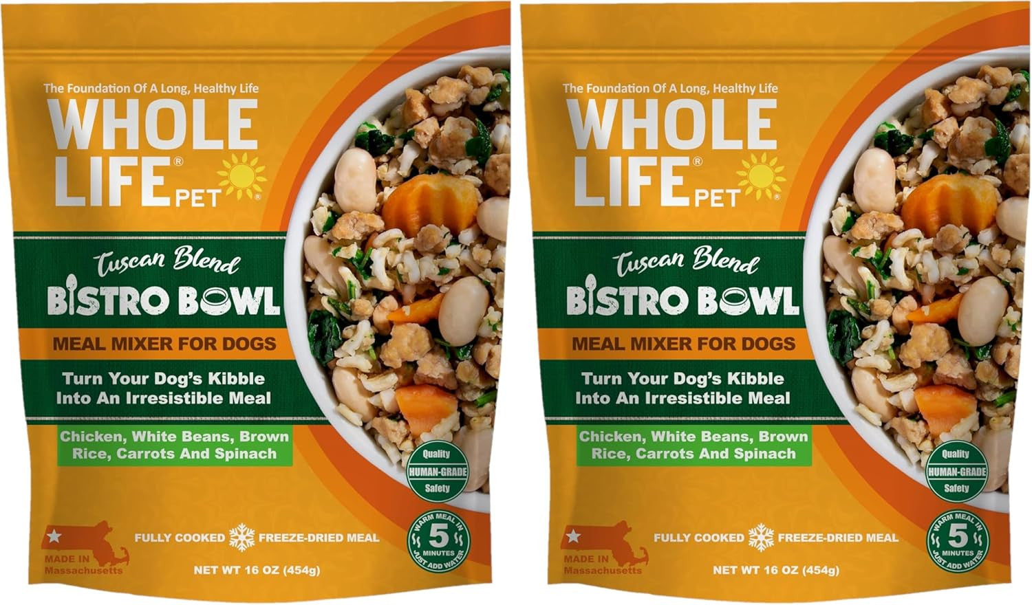 Whole Life Pet Bistro Bowl for Dogs - Human Grade Meal Mixer Food Topper - Healthy Whole Food Ingredients, Protein Rich, All Natural - Picky Eaters (Pack of 2)