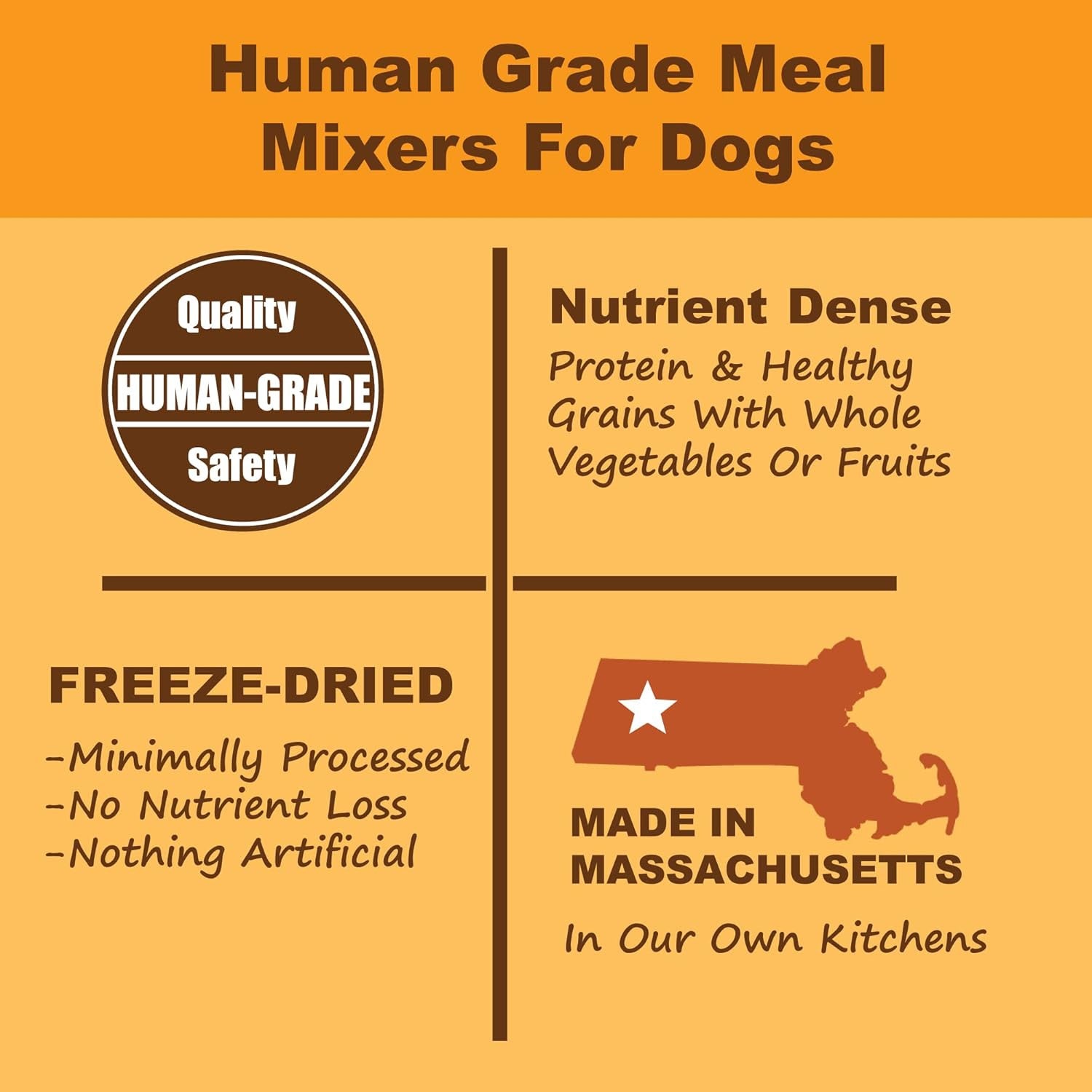 Each bowl is made with the finest human grade, whole food ingredients like lean protein, healthy grains, legumes, fruits or vegetables and all-natural flavors. They are gently freeze-dried to lock in flavor and nutrients without the use of chemicals, additives, or preservatives. Designed as a daily mixer-topper, adding exciting flavors and textures to every meal. Be sure to try them all!