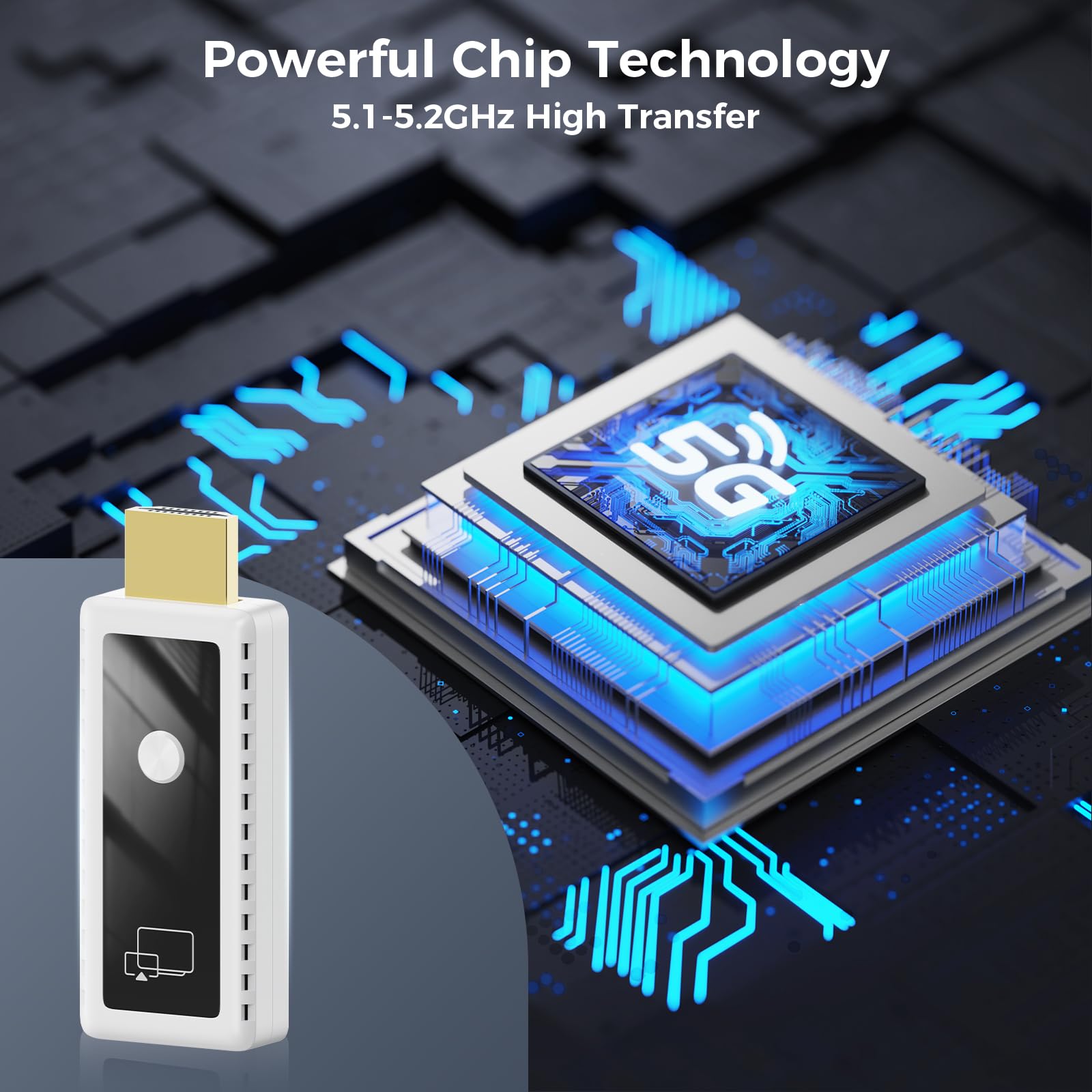 - 【Stable 5G Transmission & Low Latency】The Wireless HDMI Display Adapter utilizes 5G wireless transmission to ensure more stable transmission and high-quality video decoding. Wireless HDMI Transmitter and Receiver 2-in-1 with a transmission range of up to 10 meters in open spaces, you can enjoy wireless streaming almost anywhere in the room.