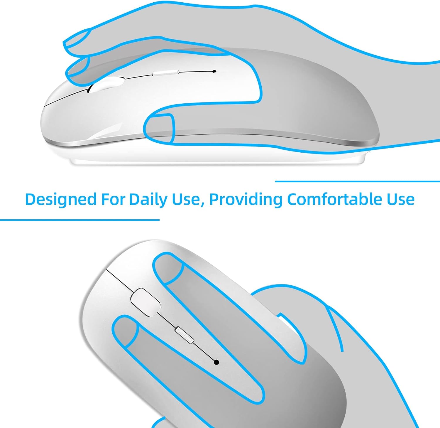 Wireless Mouse for Laptop, Bluetooth Mouse for MacBook Pro/Air/Mac/iPad/Chromebook/Computer -Rechargeale Dual Mode(USB 2.4Ghz + Bluetooth 5.2) Silent Cordless Mice with USB C Adapter,Silver