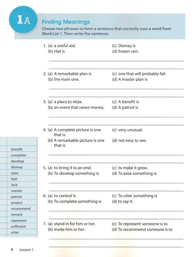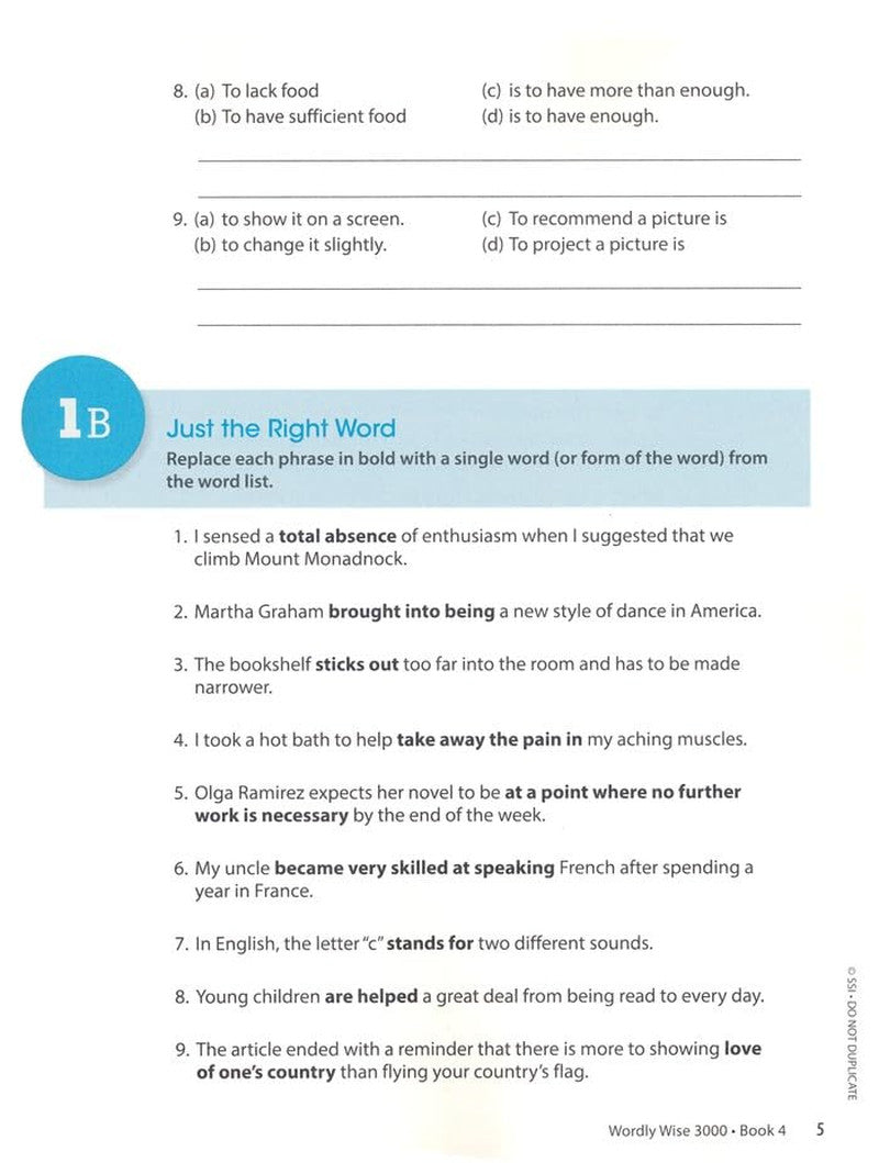 New, engaging activities that provide a greater variety for students and align with current state and national standards. An emphasis on peer sharing and interaction through "Turn and Talk" activities that include instructions to discuss and act out word knowledge. Differentiated reading passages and teacher support to help teachers work with students struggling with grade-level content. Access to Quizlet's pre-loaded Wordly Wise 3000 approved study sets - a fun and engaging learning app that reinforces vocabulary words through study and game activities.
