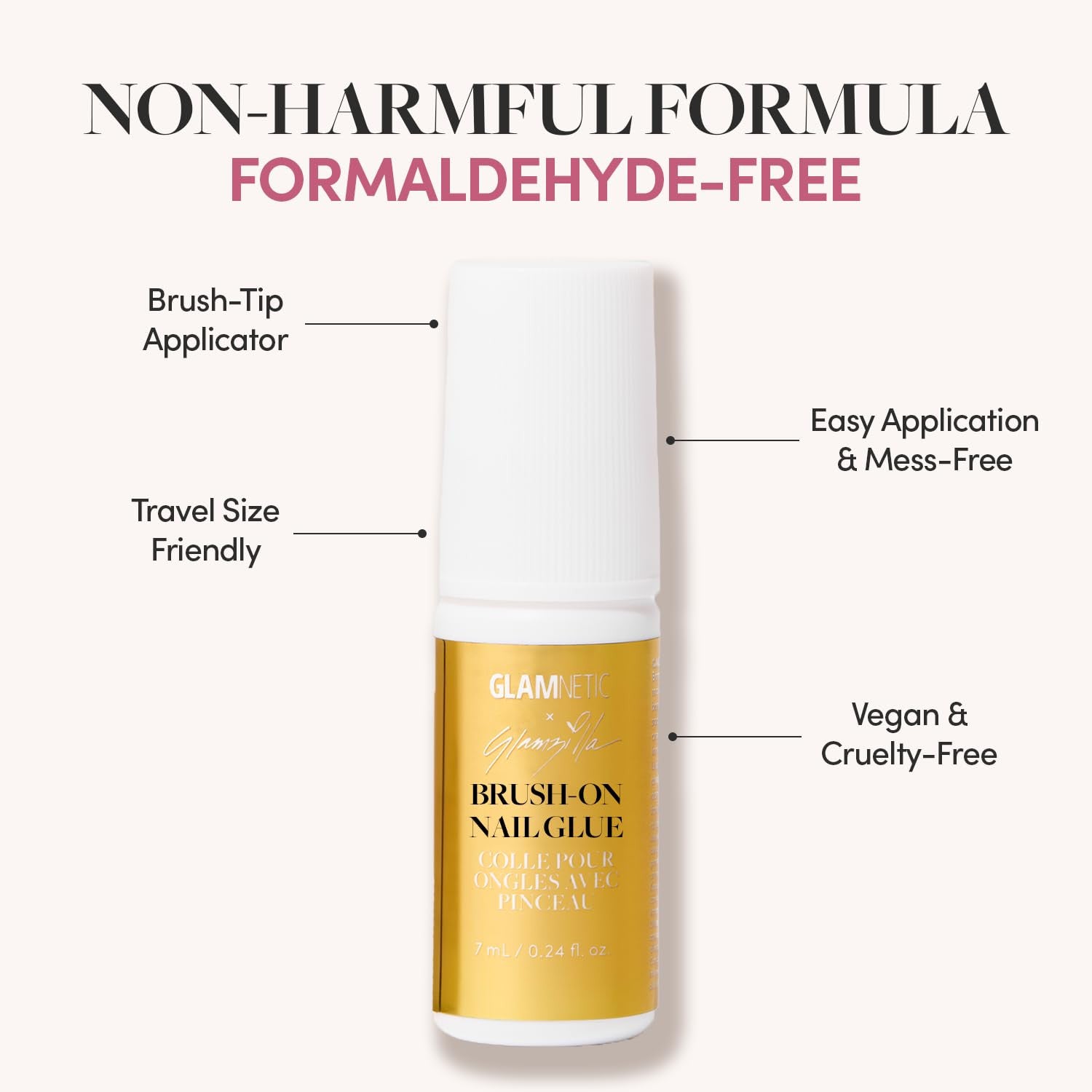 X GLAMZILLA Super Strong Brush on Nail Glue | Brush Tip Applicator, Mess Free, Travel Friendly, Vegan | Durable & Long-Lasting | .24 Fl. Oz.