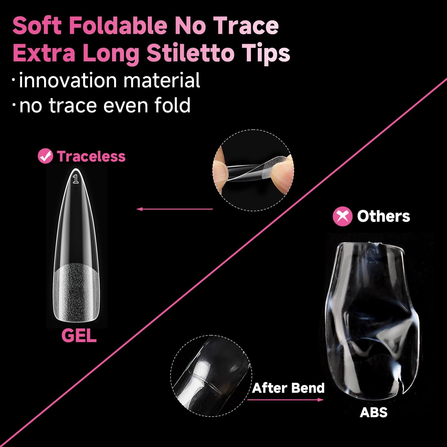 XXL Stiletto Nail Tips, 312Pcs Pre-Shape Extra Long Stiletto Nails Tips Half Mat
