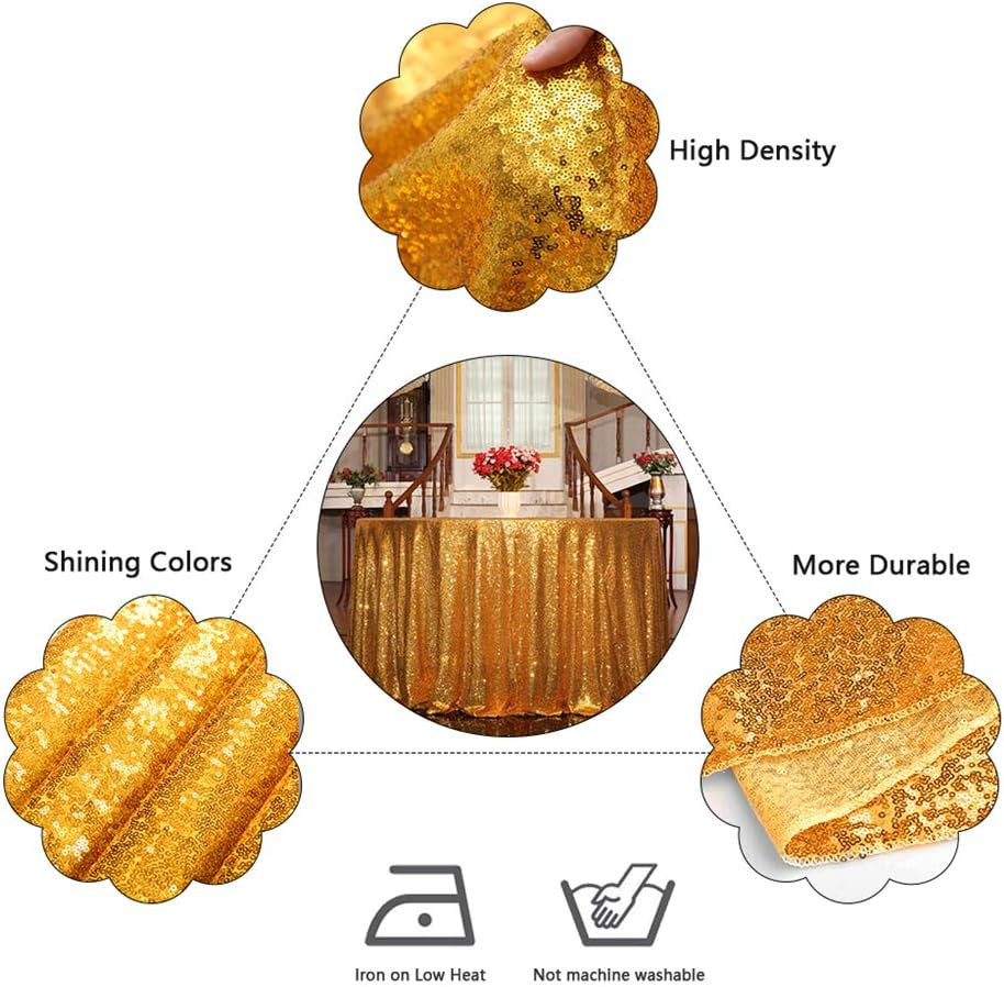 Yellow Gold Sequin Tablecloth 120-Inch Sparkly Overlay round Glitter Table Cover for Wedding Party Birthday Decoration