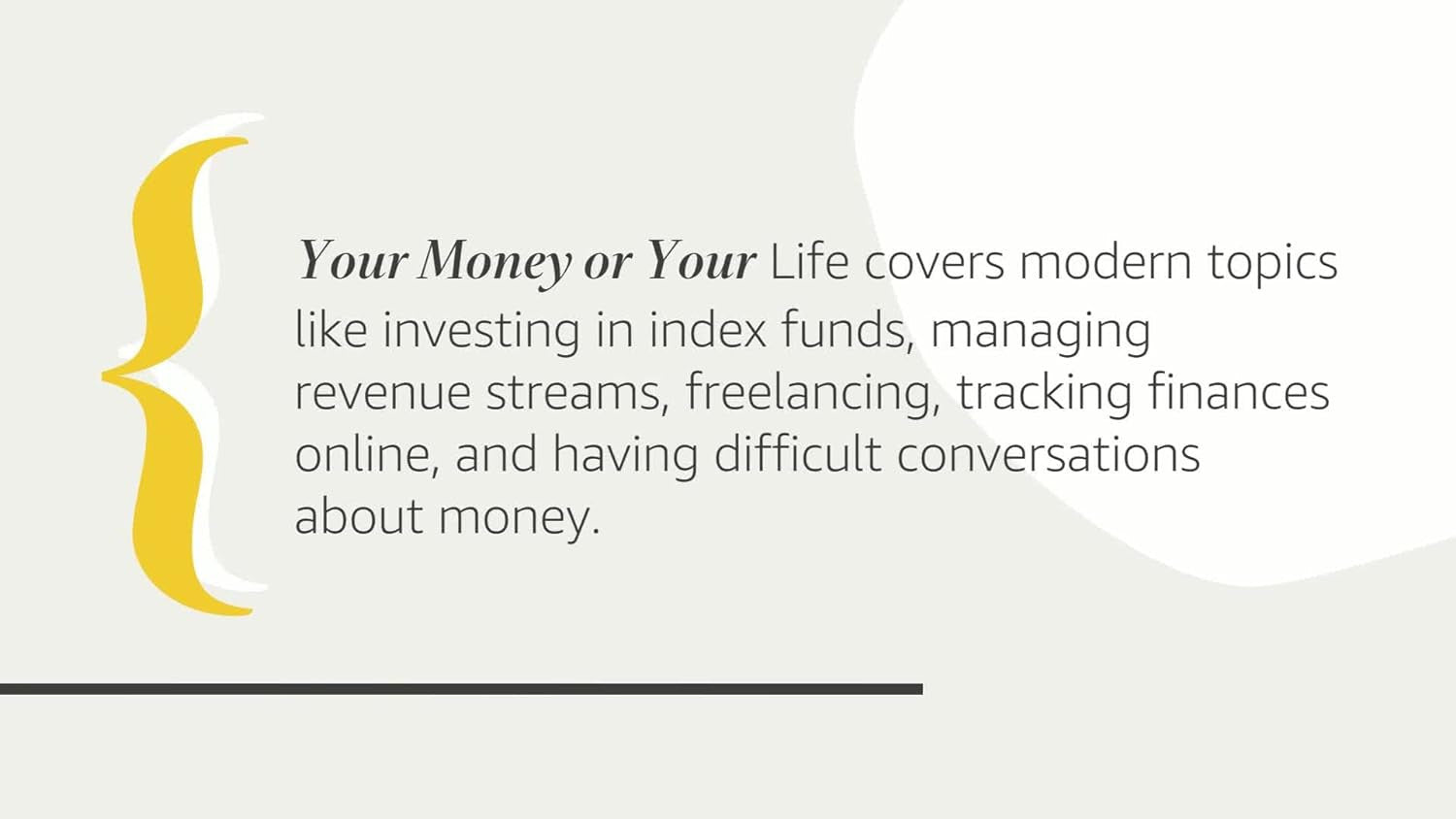 For more than twenty-five years, Your Money or Your Life has been considered the go-to book fortaking back your life by changing your relationship with money. Hundreds of thousands of people have followed this nine-step program, learning to live more deliberately and meaningfully with Vicki Robin’s guidance. This fully revised and updated edition with a foreword by "the Frugal Guru" (New Yorker) Mr. Money Mustache is the ultimate makeover of this bestselling classic, ensuring that its time-tested wisdom applies to people of all ages and covers modern topics like investing in index funds, managing revenue streams like side hustles and freelancing, tracking your finances online, and having difficult conversations about money.