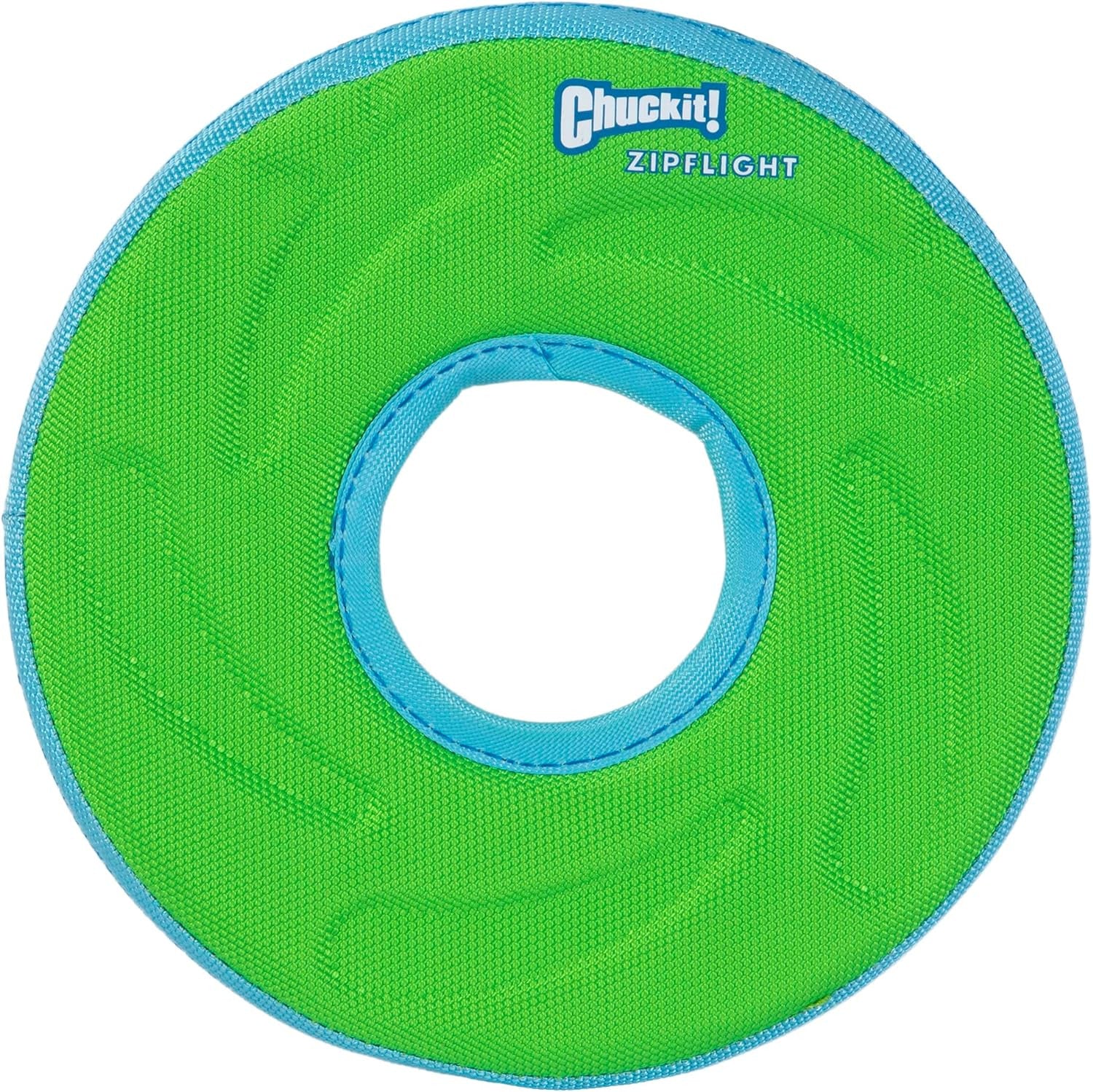 Elevate fetch sessions with the Chuckit! Zipflight Flying Dog Toy. Crafted for high-flying action, this toy guarantees thrilling long-distance fun. Its buoyant design ensures playfulness on land and water, making it perfect for pool, beach, or lake play. Built tough from dense polyester canvas, the lightweight Zipflight features vibrant colors for enhanced visibility and an aerodynamic shape for exciting throws. Measuring 8.5" x 8.5", it suits medium to large breeds, but remember, it's not a chew toy—always supervise playtime. Experience the Chuckit! bond through interactive play. Our Performance toys cater to you and your canine companion, offering a variety of indoor and outdoor options. Strengthen connections with Chuckit! Fetch Pet Toys, designed to keep dogs engaged. From ball launchers to chew toys, create lasting memories of shared fun.