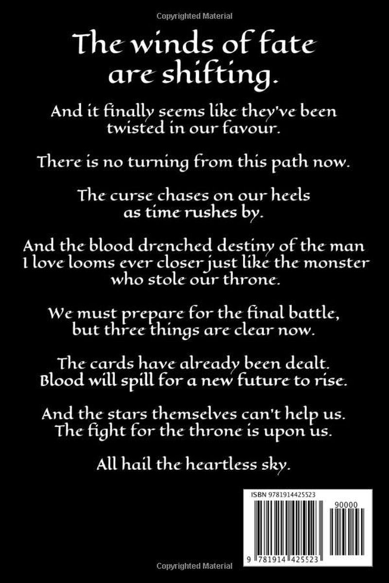 There is no turning from this path now. The curse chases on our heels as time rushes by and the blood drenched destiny of the man I love looms ever closer just like the monster who stole our throne.